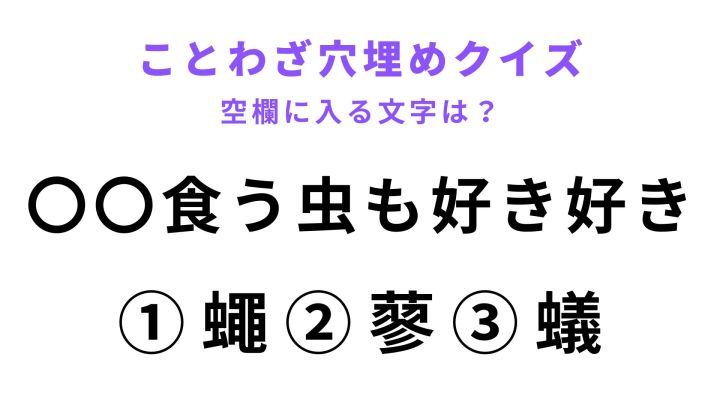 【〇〇食う虫も好き好き】空欄に文字を入れてことわざを完成させて!