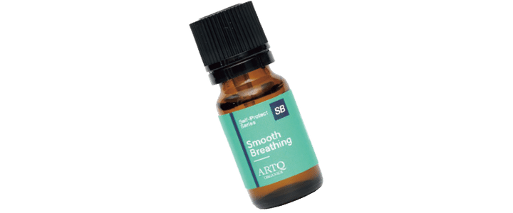レモンやユーカリナローリーフなどのオーガニック精油をブレンド。「深呼吸したくなるような香り」アロマティークオーガニクス スムースブリージング ブレンドオイル 10mL ¥3,245(Blue ink)