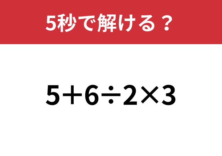 大人なら正解できるはず?「5+6÷2×3」5秒で解ける?