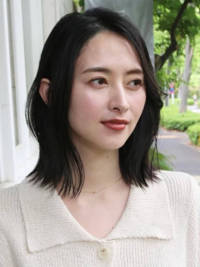 清楚でナチュラルな雰囲気を目指すなら、ストレートベースのミディアムレイヤーに、ダークトーンの「ツヤ感ヘアカラー」を合わせましょう。今っぽ感を押さえつつ大人の魅力が一気に高まります。