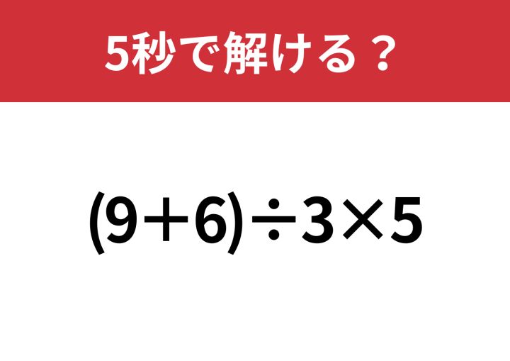3. 大人でも間違える人は多いかも?「(9+6)÷3×5」5秒で解ける?