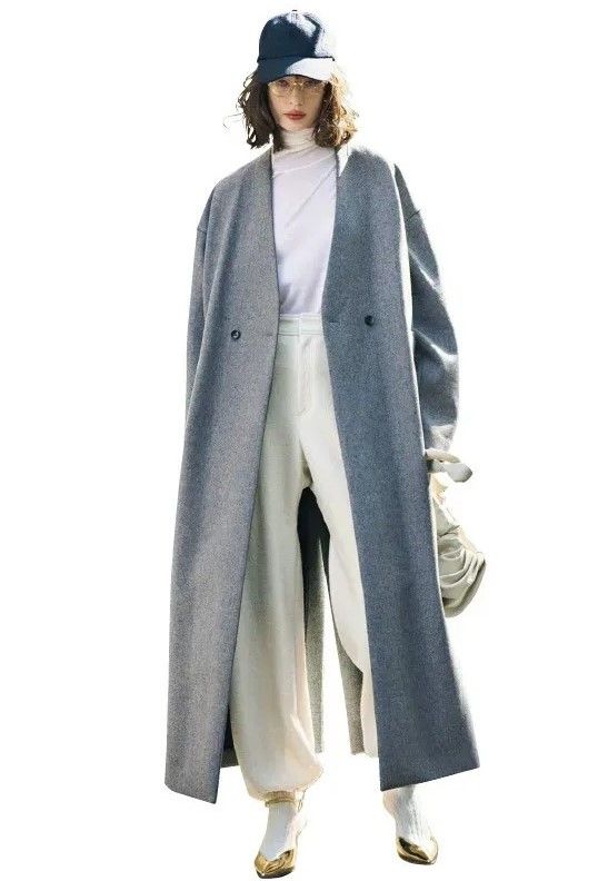 簡単オシャレ見えがかなう「キャップと眼鏡」のセット。ベーシックな黒縁もいいけれど、細身のメタルフレームで印象チェンジ。ビッグコートに対し、顔まわりはキャップでコンパクトにまとめてバランス良く。スウェットパンツをソックスINして足元を「たるませる」のも取り入れたい旬のテクニック。