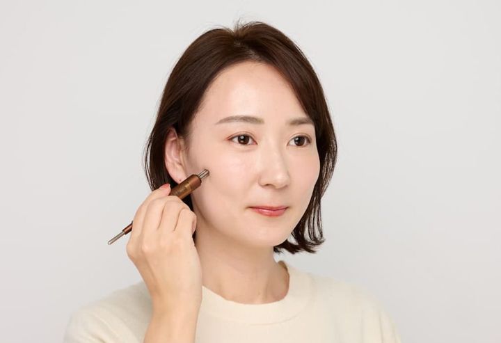 顔のあてる箇所によって、シングルロッドとトリプルロッドを使い分けてコリをほぐします