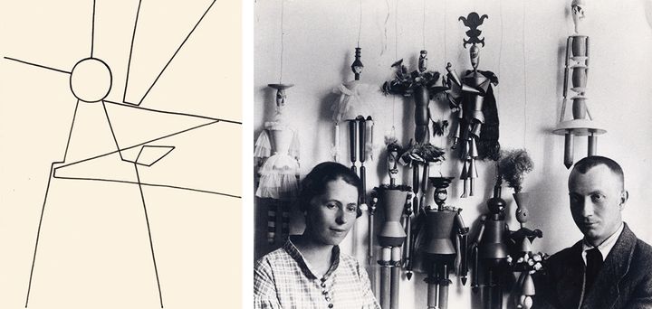ゾフィー・トイバー=アルプはスイス生まれの芸術家で、テキスタイルデザインから幾何学的模様による絵画や空間、建築まで手掛けた。その夫ジャン・アルプはドイツ生まれ。詩人でもありながら、コラージュやレリーフ、彫刻を制作した人物だ。