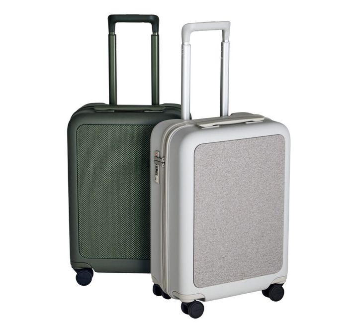 プロダクトデザイナー・柴田文江が手がける〈モルン〉のスーツケースに限定モデルがお目見え。フロントにはアメリカのファブリックメーカー〈ノル テキスタイル〉によるボディと同系色の生地を採用。丸みのある形と調和してモダンな仕上がりに。自在に高さを調整できるハンドルや、スムーズに回転するキャスターもポイント。