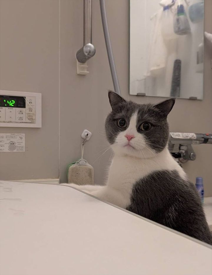 飼い主さんによると、お風呂の蓋を半分閉めておくのがポイントかも・・・とのこと。 蓋を半分でも閉めていればネコたちがその上に乗れますし、お風呂の熱で温かくなっているので居心地もよさそう。 湯舟があまり見えないので、お風呂に抵抗なく来れるのかもしれませんね~。