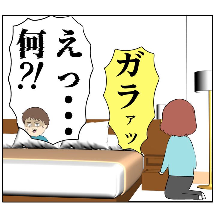 めいさんはベッドサイドの棚に向かうとガラッと引き出しを開けました。「えっ・・何?!」めいさんの行動がわからず動揺するろみ緒さん。