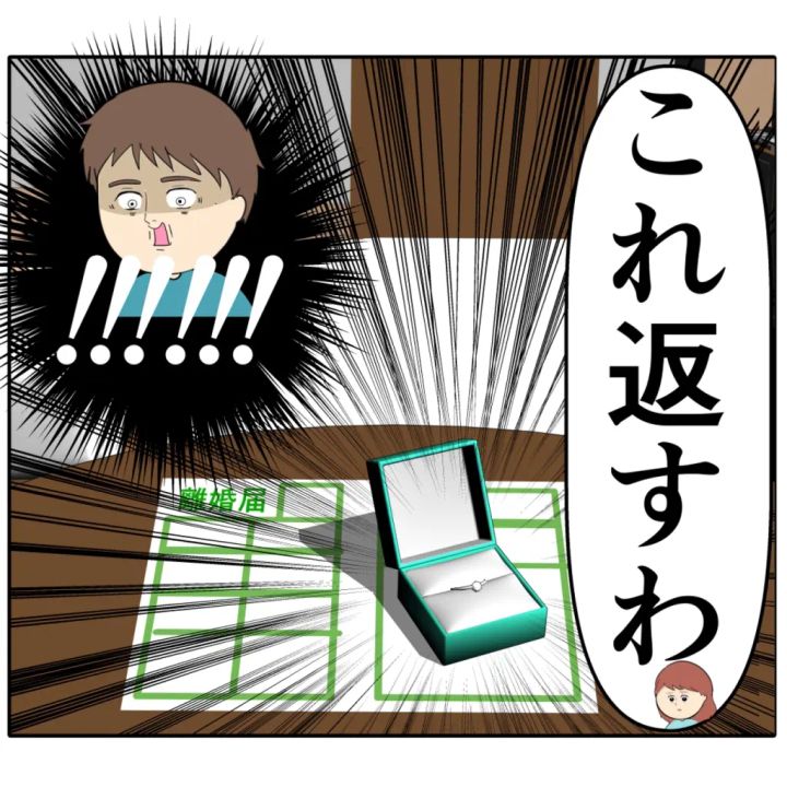 めいさんが冷めた声で「これ返すわ」と言って離婚届の上に置いたのは、ろみ緒さんが贈った結婚指輪でした。