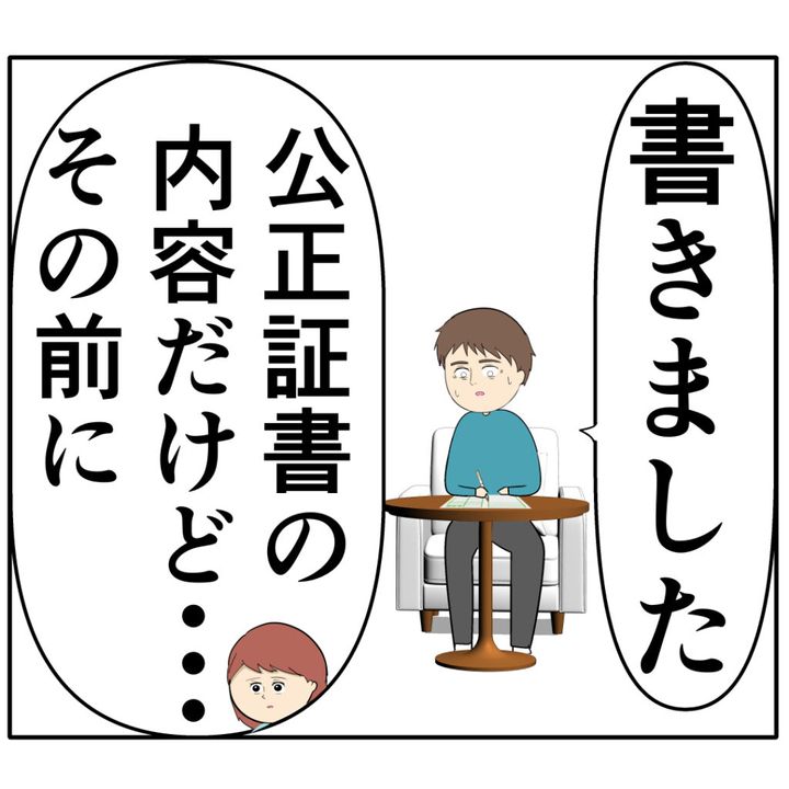 離婚届を記入し終えたろみ緒さんが「書きました」と告げると、「公正証書の内容だけど・・その前に」と言いながら移動するめいさん。
