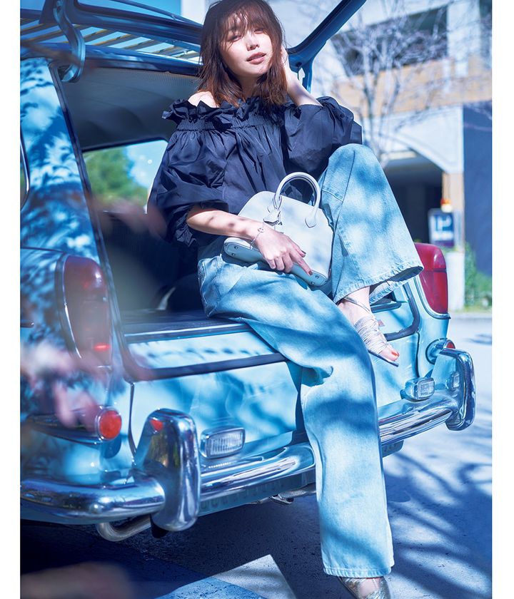 「真っ白な〝ボリード〟なんて最高の贅沢!華やいだシーンではもちろん、ラフなスタイルも格上げしてくれるから長い長いお付き合いに。大事にメンテナンスしながら娘に受け継ぎたい」(モデル・蛯原さん)