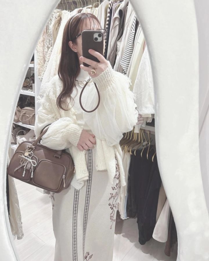 @eee.x.chanさんがコーディネートに取り入れているこちらのカーディガンは、たっぷりのフリンジとボリュームたっぷりのチュール袖がとってもキュート♡ふわふわと軽やかなチュールが春らしい雰囲気を演出してくれます。