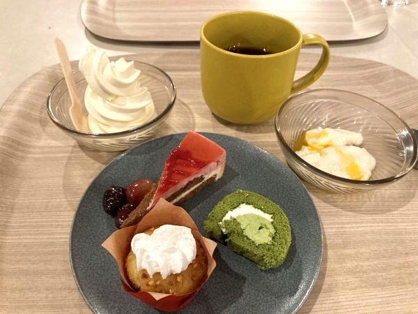 もちろんデザートは別腹!子供にも大人にも大人気のソフトクリームマシーンもあったり、デカフェも嬉しい~。