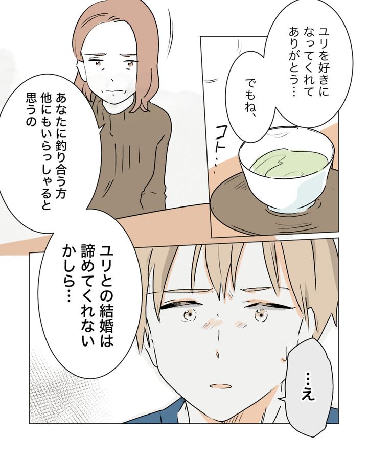 「ユリを好きになってくれてありがとう・・でもね、あたなに釣り合う方、他にもいらっしゃると思うの。ユリとの結婚は諦めてくれないかしら・・」お母さんにそう言われ、