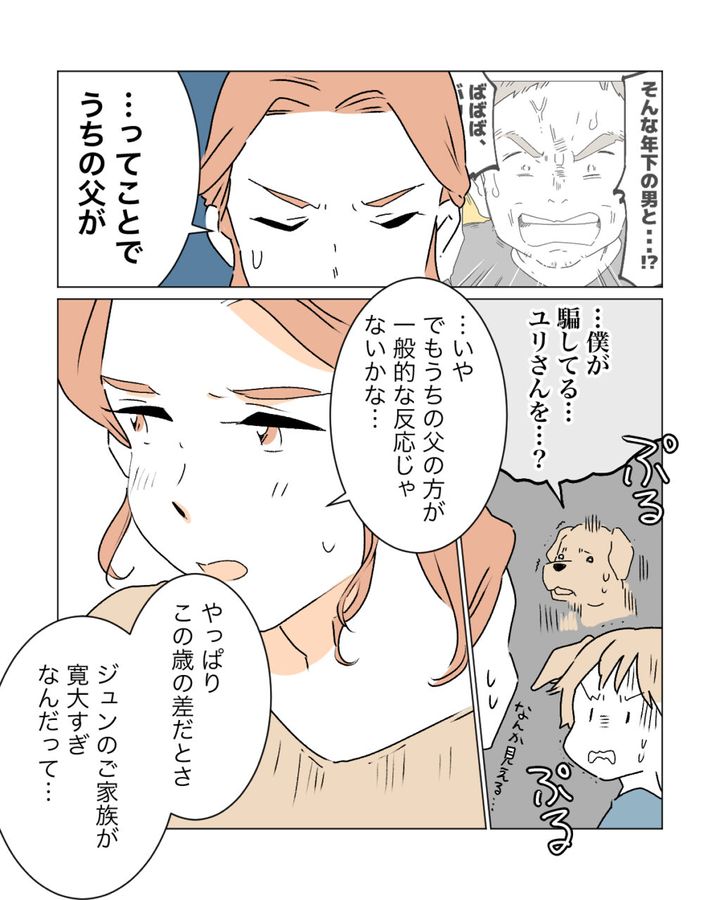 「・・いや、でもうちの父の方が一般的な反応じゃないかな・・。やっぱりこの年の差だとさ、ジュンのご家族が寛大すぎなんだって・・」と言うと、
