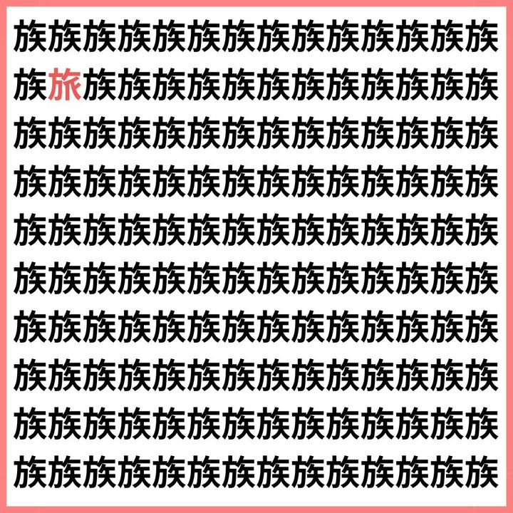族の中に紛れた漢字【1文字だけ違う】漢字間違い探しで脳トレ、何秒で見つかる?