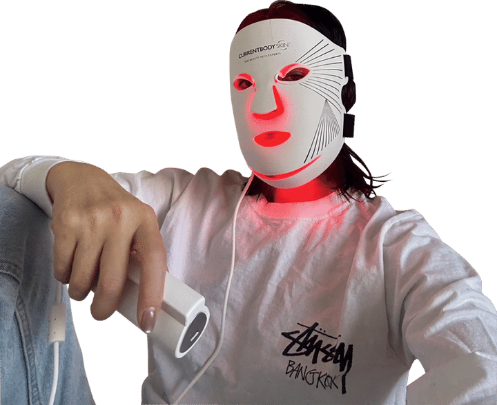 「いろいろ試しますが、スタメンは通っている「INFINEEZ」のエステと併用しているDr. PUR BEAUTEをライン使い&ギアの合わせ。ニキビができたり肌荒れすることが少なくなって、高め安定をキープできています。特に気に入っているのが、かなり強烈な見た目のCURRENTBODY SKIN™のLEDマスク。目の部分があいてますが、それでも眩しいほど強力なLEDでフェイスラインまでケア。せりちゃん(モデルの岩堀せりさん)に誕生日にもらったシートマスクは、かなり効果を感じた最近のヒットアイテム!」(佐田さん)