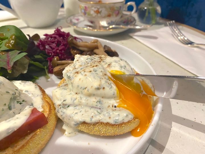 珍しいソースでいただくエッグベネディクトも注目