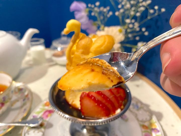 もちろんお茶だけでなく食事やスイーツも絶品。なかでも人気の「白鳥の湖プリン」は、白鳥の形に仕上げられたシュークリームをすこし固めのクラシカルなプリンにのせた1品です。