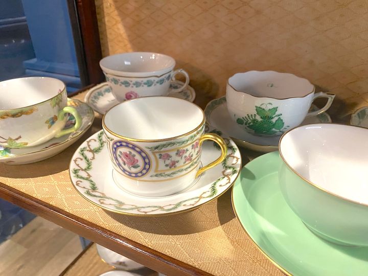 お茶を注文すると、18種類(取材時)のなかから好きなティーカップを選ぶことができます。どれもおしゃれかつ個性的で、優雅なティータイムを演出してくれそうです。