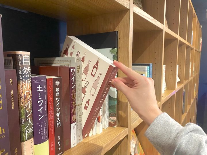 壁一面を使った本棚には、小説や写真集、図録などがずらりと並んでいます。