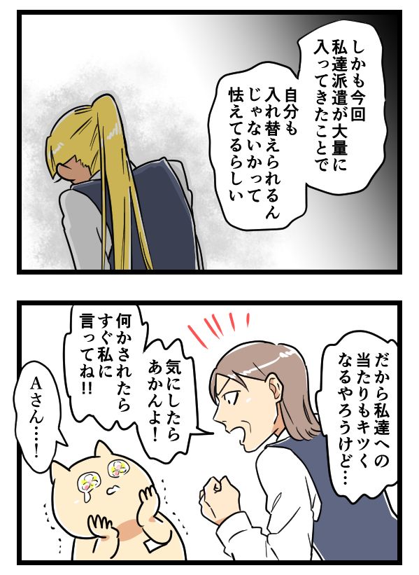 ー一緒に挨拶回りをしていた派遣の同期の方は、パチ美さんに対するつぼえさんの行動を見て、どのような反応をされていましたか?