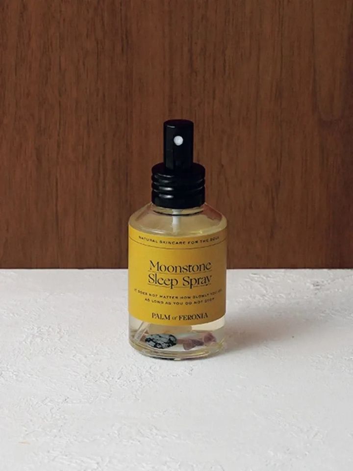 パーム オブ フェロニア ムーンストーン スリープ スプレー 100mL 8,800円/doinel 外苑前 「お風呂上がりは部屋の電気を消し、スタンドライトのみのやさしい光に。ラベンダーとカモミールが香るスプレーを数プッシュし、副交感神経を高めることを習慣化」(高橋美穂さん・@sleeping0mihoc)
