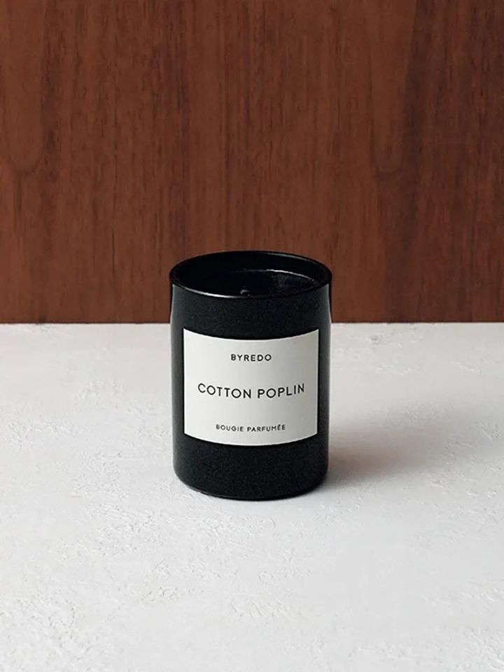BYREDO キャンドル コットンポプリン 240g 10,560円/エドストローム オフィス 「さわやかさの中に、凜とした女性らしさも感じられる香りがお気に入り。平日の夜にだけ火を灯し、オンとオフを切りかえるためのスイッチとして活用しています」(長谷川真美さん・@mami___hasegawa)