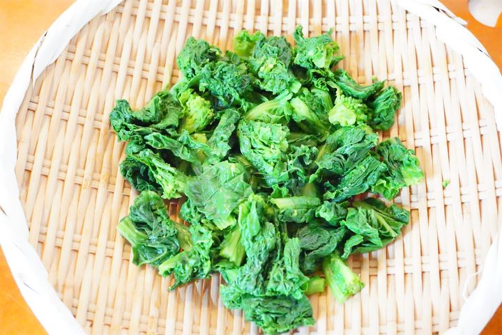 3. 沸騰した湯で菜の花を色よく茹でて冷水に取る。水気を絞り、適当な大きさに切る。