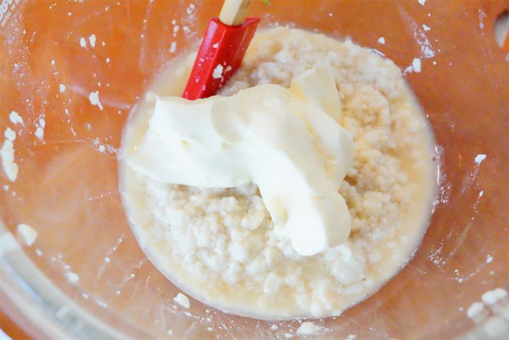 和え衣に使うクリームチーズは、室温で柔らかくします。