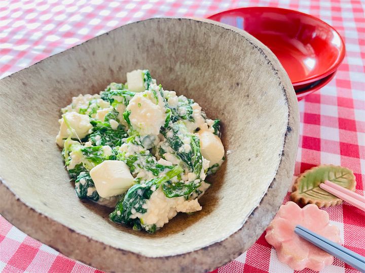 “白和え“といえば、豆腐とすりゴマで作るのが一般的ですよね。でも、今回神奈川県の農家に教わった「菜の花のチーズクリーム和え」は、なんとクリームチーズを使用!豆腐とクリチを組み合わせることで、コクがありながらもさっぱりとした、新感覚の洋風白和えに仕上がるそう。ほろ苦い菜の花とまろやかなクリチのハーモニーで、春を先取りしちゃいましょう♪