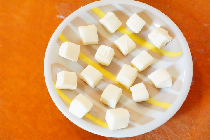 4. クリームチーズを角切りにする。