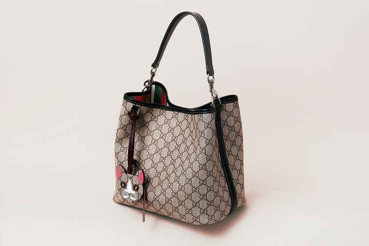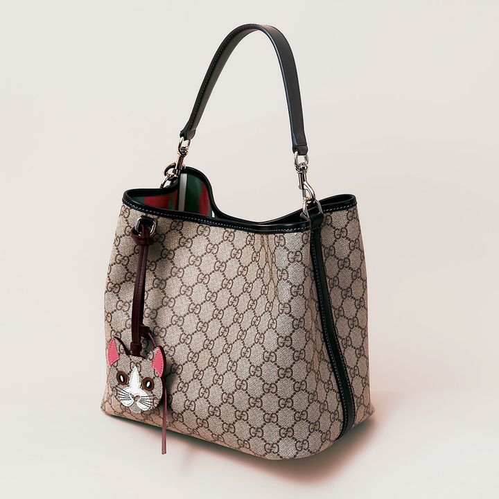 バリエーション豊かなスタイルが特徴の「GGエンブレム」は、このマグネットクロージャーのバケット シェイプのほか、ソフトなホーボーシェイプ、仕事にも適した横長トートも。グッチを象徴する、赤と緑の「ウェブ ストライプ」のライニングもときめくポイントです。愛らしいアニマルチャームは猫のほかにも、パンダにフクロウ、ダックスフンドなど…楽しい仲間が勢ぞろい! バッグ「GGエンブレム」スモール ショルダーバッグ〈H25×W25×D15.5cm〉¥309,100チャーム¥42,900(ともにグッチ/グッチ クライアントサービス)