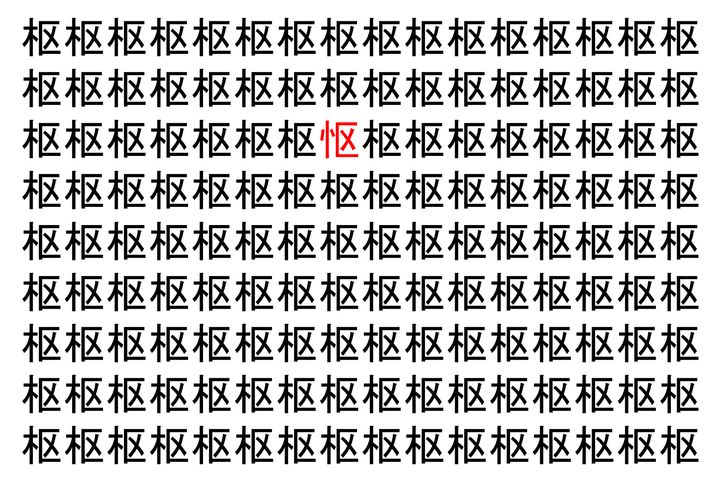 2. 【脳トレ】「枢」の中に紛れて1つ違う文字がある!?あなたは何秒で探し出せるかな??【違う文字を探せ!】