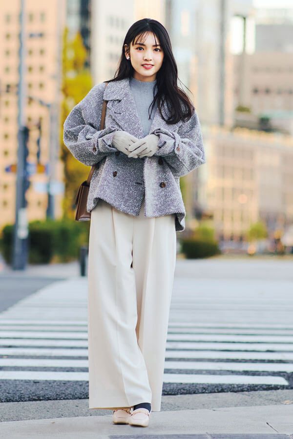 3. 防寒もできて美シルエットも叶えるワイドパンツでこなれ通勤<3/7のコーデ>