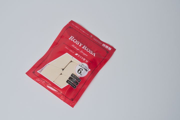 そして、ヘアメイクの長井かおりさんにお仕事でご一緒させていただいた際に、あるベースメイク法を教えてもらって、そのおかげで一気に時短になって崩れ知らずにもなり、かつ抜け感も出せるようになったんです!どうやるかというと、まず下地を丁寧に塗った後、ファンデーションを全顔に塗る必要はなくて、人の目がいきやすいゾーンだけに塗るのがポイント。目の下こそがその美肌ゾーンなんです。ツールで登場するのがロージーローザのダイヤ型スポンジ。私は「スーッサッサ」で覚えているんですが、美肌ゾーンにスーッと伸ばしたファンデをスポンジで垂直にタップして馴染ませたら、後はサッサと優しく頬に向けて伸ばすだけ。スポンジに余ったファンデで額などもサッサでおしまい。