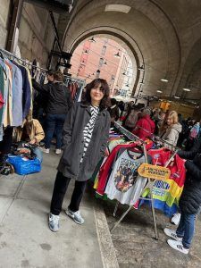 ブルックリンのフリマで買ったコートを着て