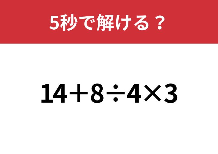あなたの実力を試してみて!「14+8÷4×3」5秒で解ける?