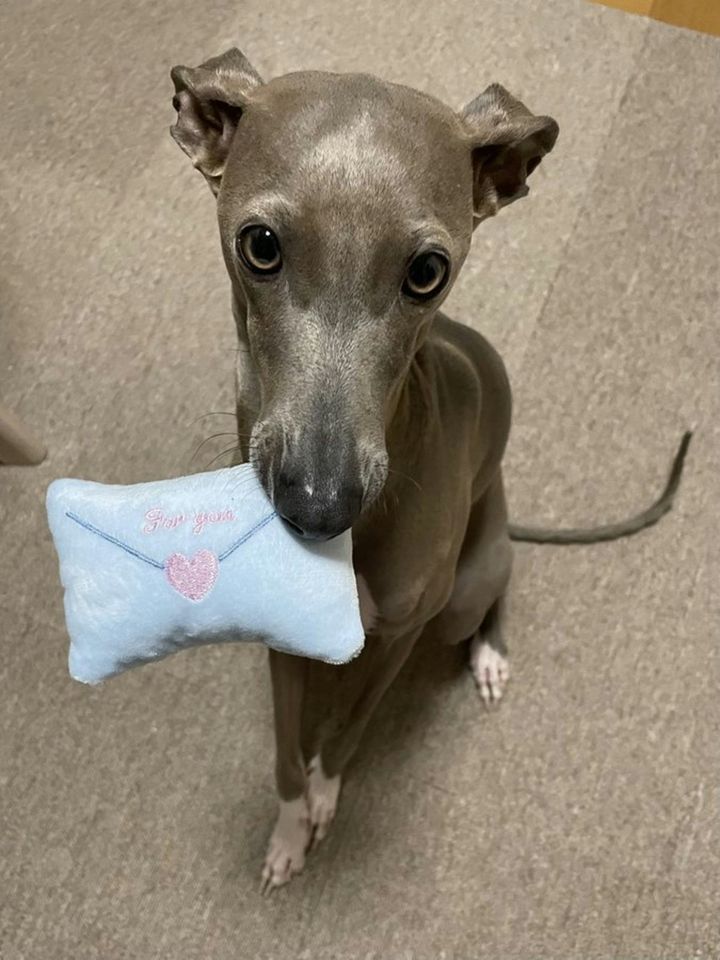 愛犬と暮らす投稿者・プット(@IGGY_PUTTO)さんは、Seriaで売っているぬいぐるみで持ってこい遊びをしたところ、まるで愛犬がラブレターを運んできたかのような写真が撮れたそう。思わずキュンキュンしてしまうお写真です。