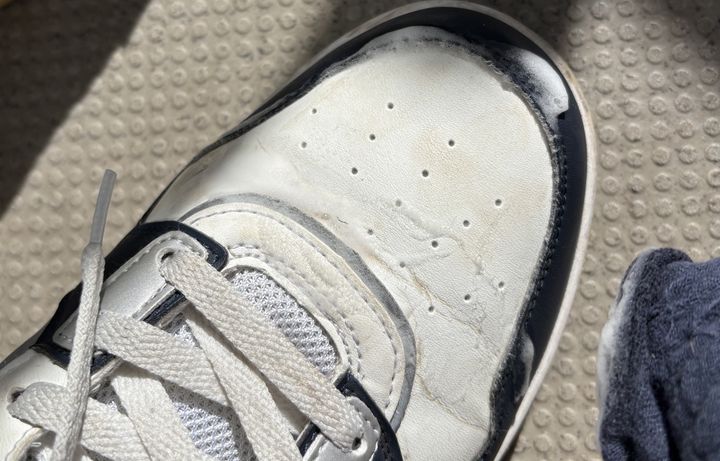 ターゲットはこちら。グラウンドの砂でこすったような黄土色の汚れが、特に甲と脇の部分に目立ちます。