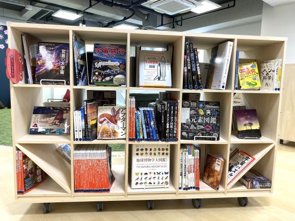 子どもたちの興味を引きそうな分野ごとに、独自の並べ方で本が排架がされている書棚もありました。