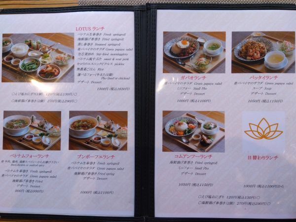 メニューは、デザートまでセットになったベトナム料理のリーズナブルランチ、夜はベトナム料理を中心にアジアンテイストたっぷりのアラカルトで楽しめますよ。