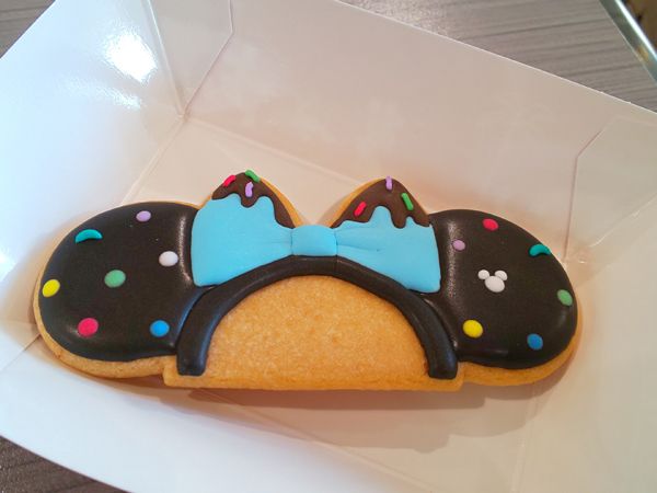 ミニーちゃんのカチューシャをイメージしたアイシングクッキー。ブルーのリボンはヴァネロペをイメージしています。