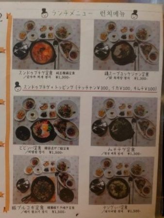 ランチメニューは6種類。スンドゥブチゲ定食(純豆腐鍋定食・1300円)をはじめ、ビビンバ定食(1500円)、豚プルコギ定食(韓国豚すき焼き定食・1500円)などのメニューがあります。今回はとても寒い日だったので、体が温まりそうな「スンドゥブチゲ定食」をオーダーしました。