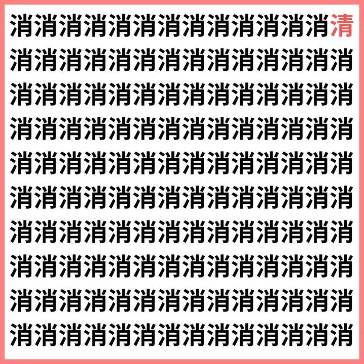 たくさんの「消」の中に、1文字だけ違う漢字が混ざっています。
