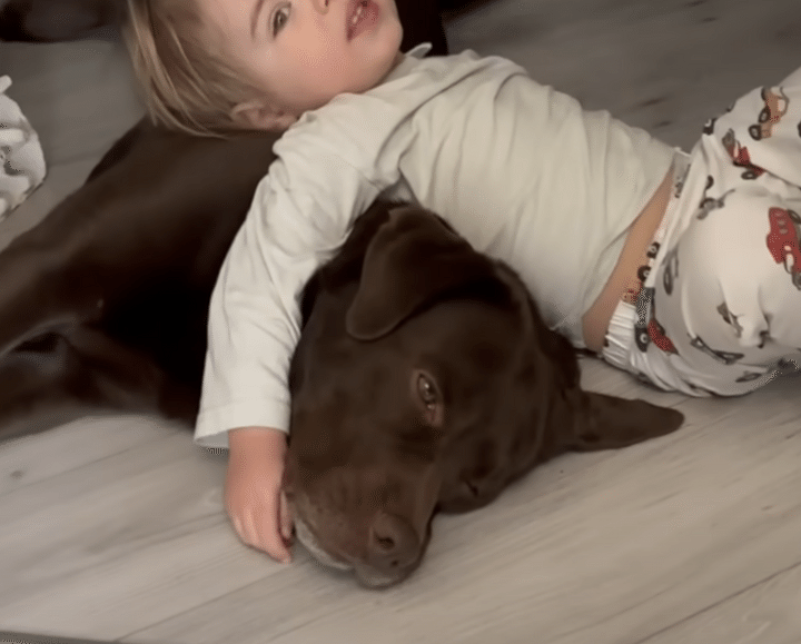 3. くっついて寝るの好き♡ 枕にされても怒らない優しい犬さん