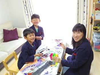 7歳の陽樹くんはいろんな色を使って、紙からはみ出すぐらいの龍を描いています。