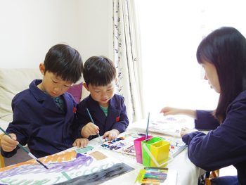 こんなとき、絵の具を服につけてしまうとママ達は大変! と気になってしまいますが、ワークコートなら大丈夫。