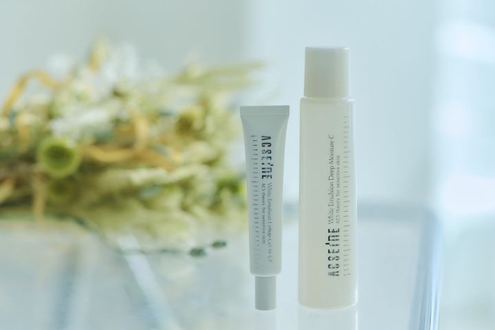 左/ホワイトエマルジョンセルアップジェルW-CP 右/ホワイトエマルジョンディープモイスチュアC 30歳ごろ、父のススメで使い始めたアクセーヌが思いのほか、肌に合いました。 そのころ、大人ニキビに悩まされており、保湿したいけれど、べたつくテクスチャーも気に入らず、コスメ難民になっていた頃です。アクセーヌのコスメは、低刺激性、無香料、高保湿で、皮ふ生理学に基づいていることなども、安心して使えた理由です。