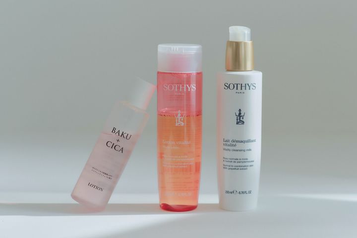 辿り着いたのは、ソティスシリーズ。 右から、ソティスミルククレンジング、ソティスローション。もう、15年以上愛用しています。そしてここ数年、プラスしたバクシカローション。 ニキビも多かったので、汚れをためない洗顔にこだわっていましたが、洗いすぎがかえって肌に負担をかけていることに気がつき、ミルククレンジングだけにしたら、一気に肌の状態が改善しました。 ミルククレンジングなら、肌の水分を奪わず、つっぱり感がありません。 バクシカローションは、次世代レチノールとも言われるバクチオールが高濃度配合されているローション。肌の細胞レベルに作用して、シミシワへ効果的に届きます。
