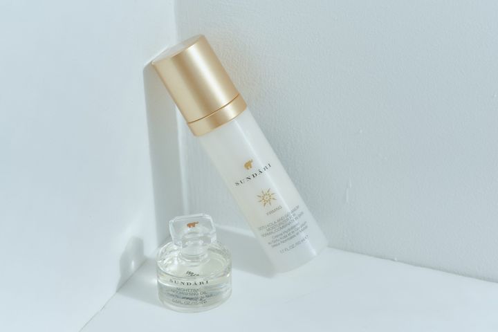 絶大な信頼をおいている愛用コスメは、NY生まれのSUNDARI。 左から、SUNDARIのファーミングとオイル。 全プロダクトオーガニック原料であること、アーユルヴェーダの理論に基づいた、 スパスキンケアプランドであることが、女性の肌にとって安心で安全である証しです。 ナイトタイムは、SUDARIの目玉商品と言っても過言ではない抜群の人気オイル。 年齢に伴って滞る血液循環をスムーズにし、直接甦らせる肌のビタミンドリンクです。